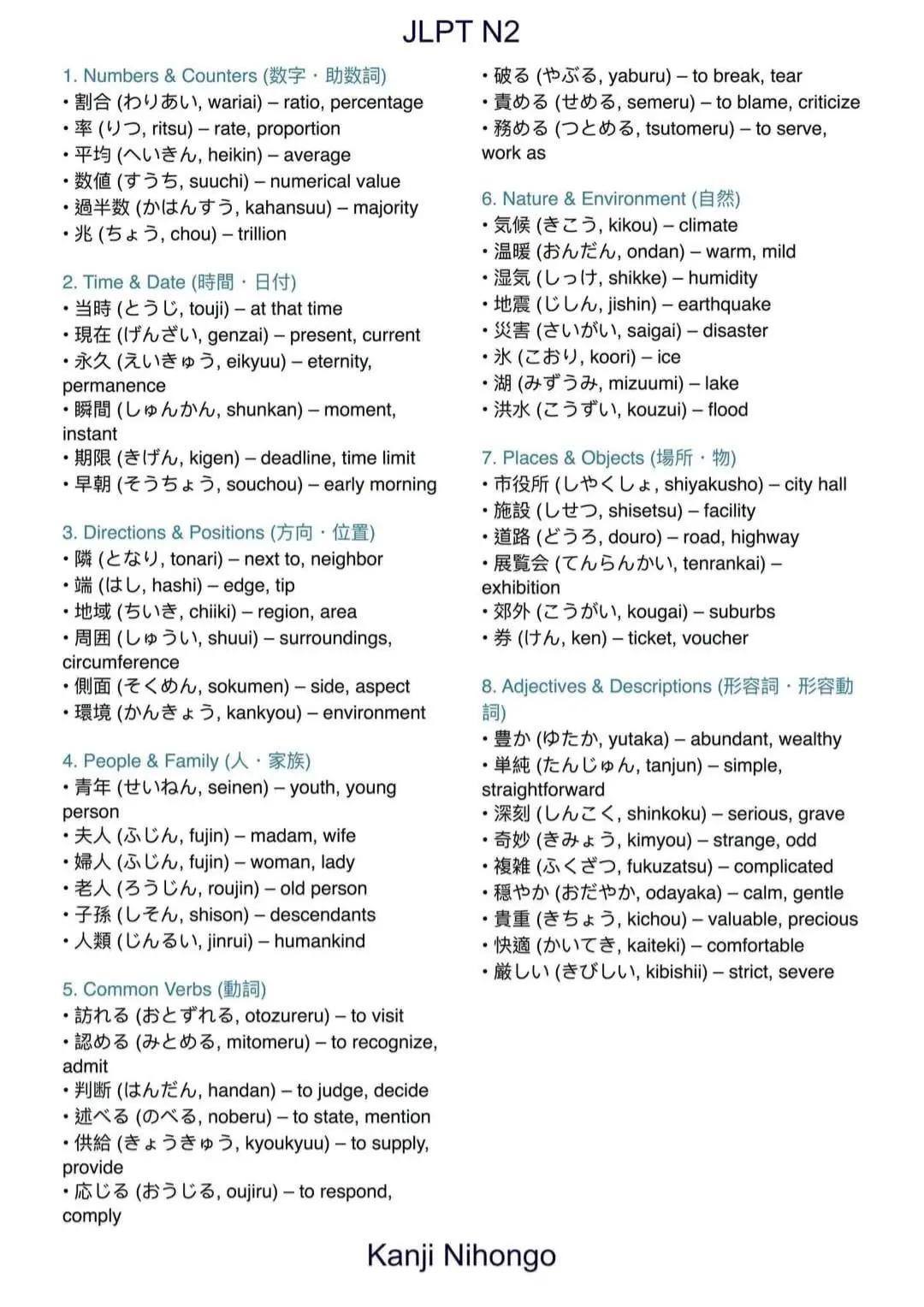 General Knowledge Vocabulary for JLPT (N5–N1)