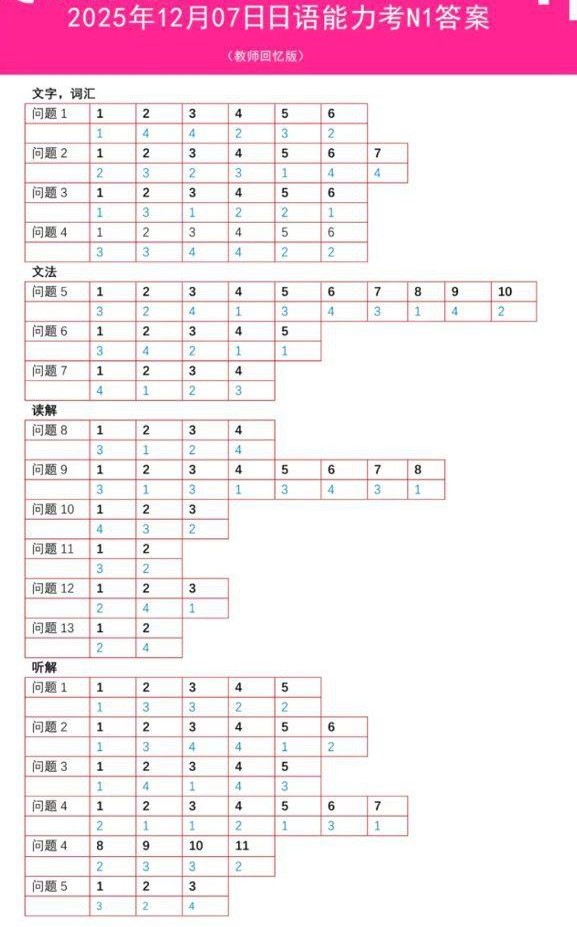 Home / JLPT / JLPT N1 / Answers – JLPT N1 – 12/2025
