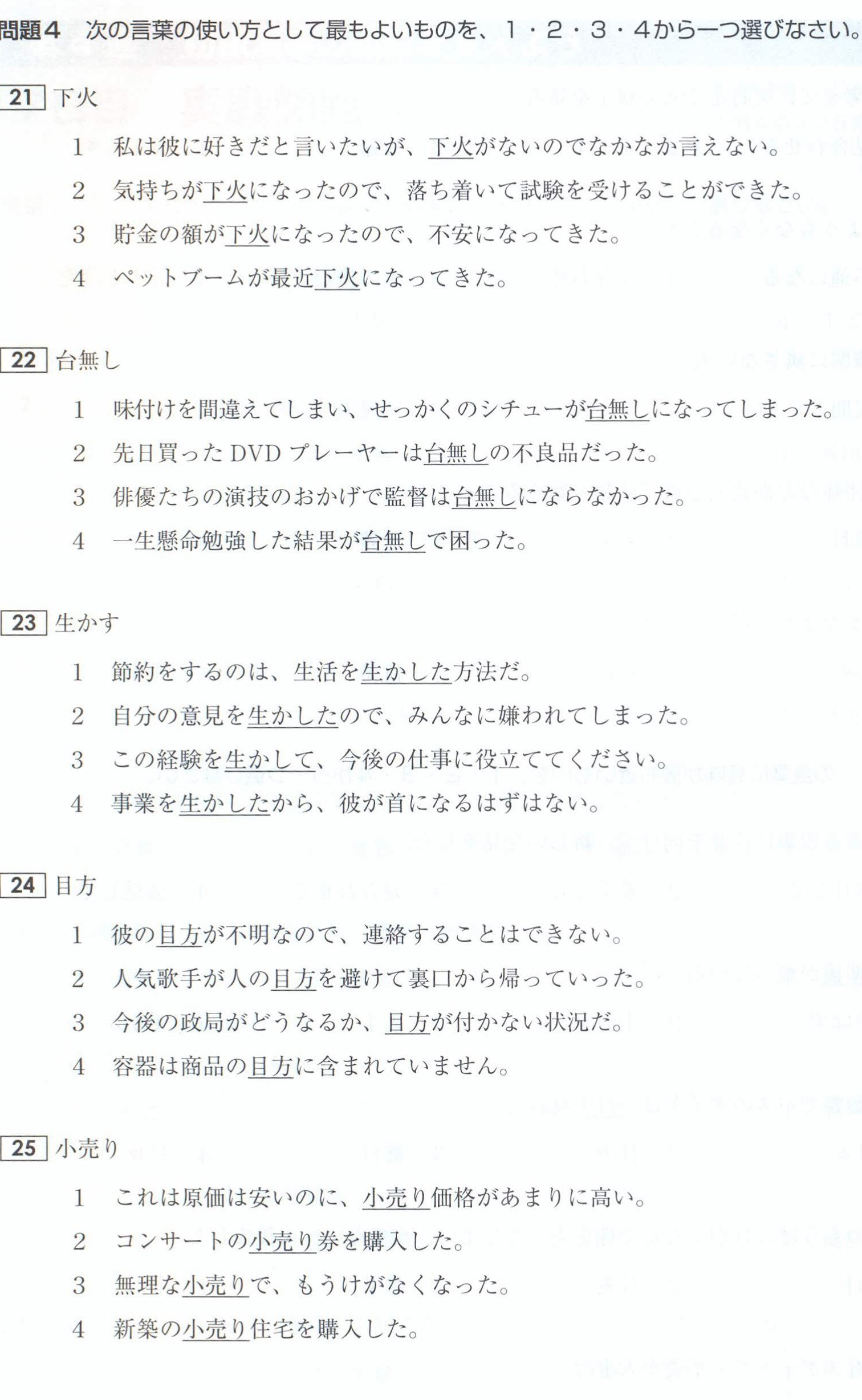 JLPT N1 Vocabulary Exercises: Test 4 (With Answers)