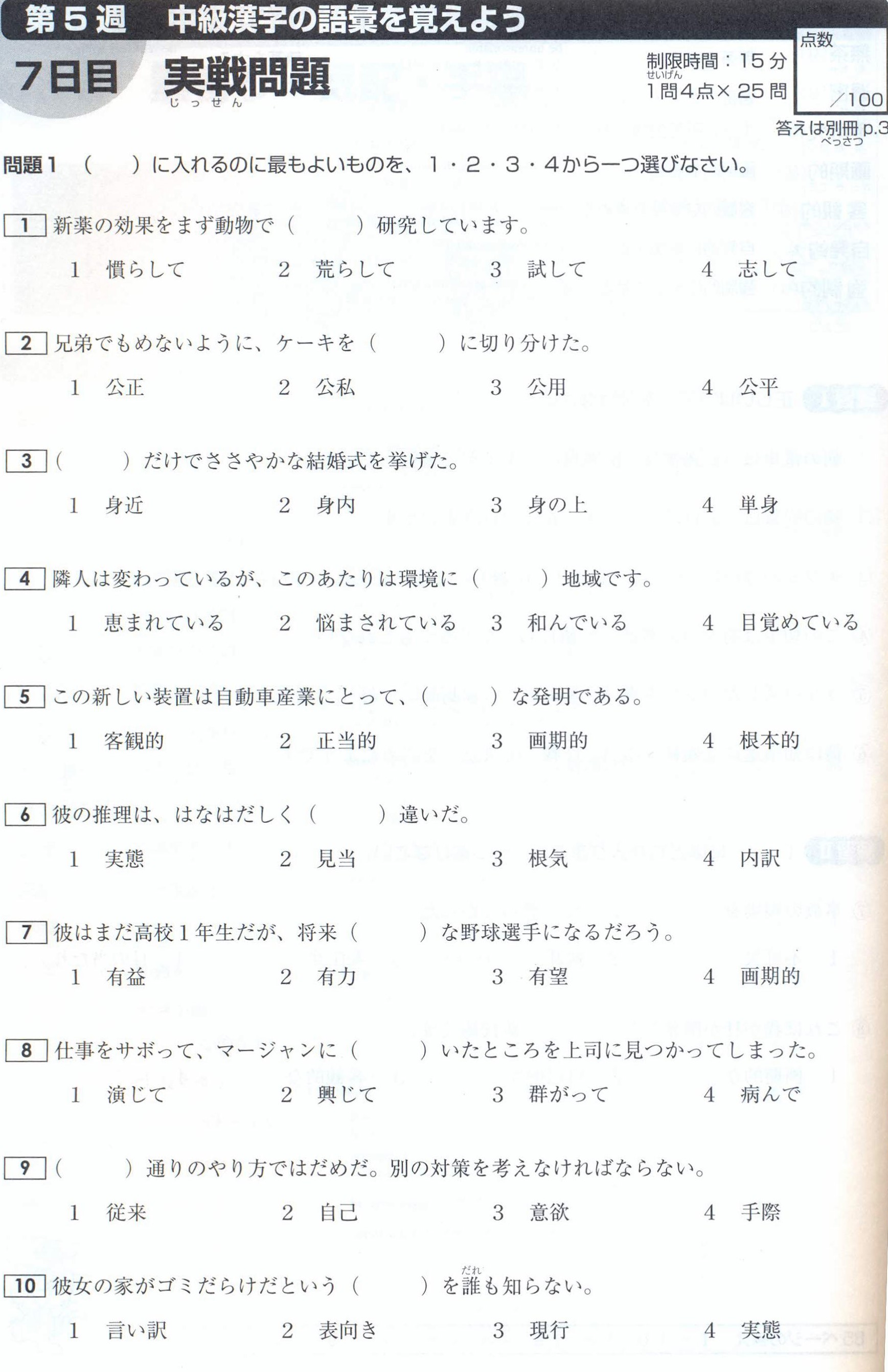 These exercises will help you review JLPT N1.