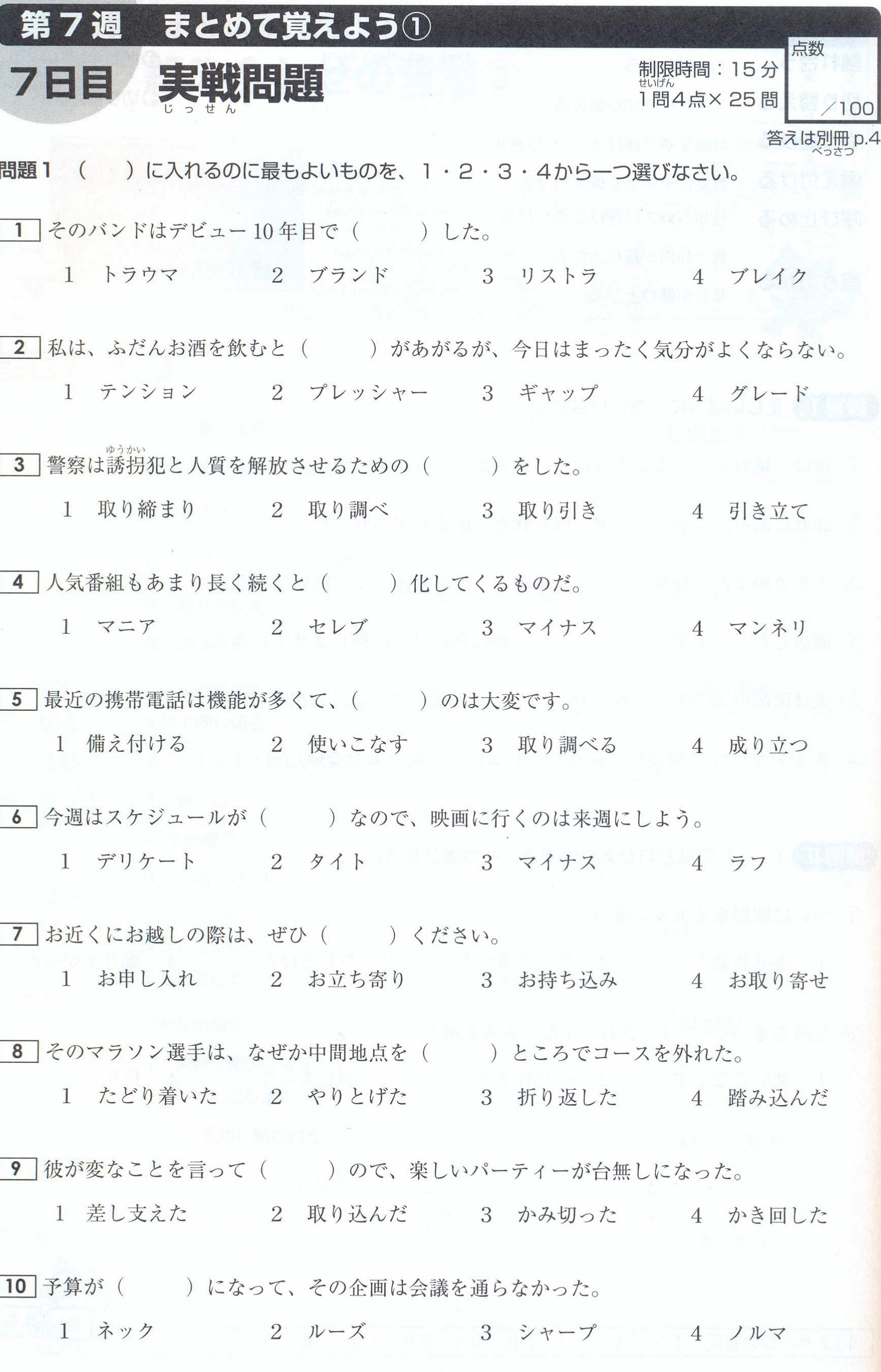JLPT N1 Vocabulary Exercises: Test 7 (With Answers)