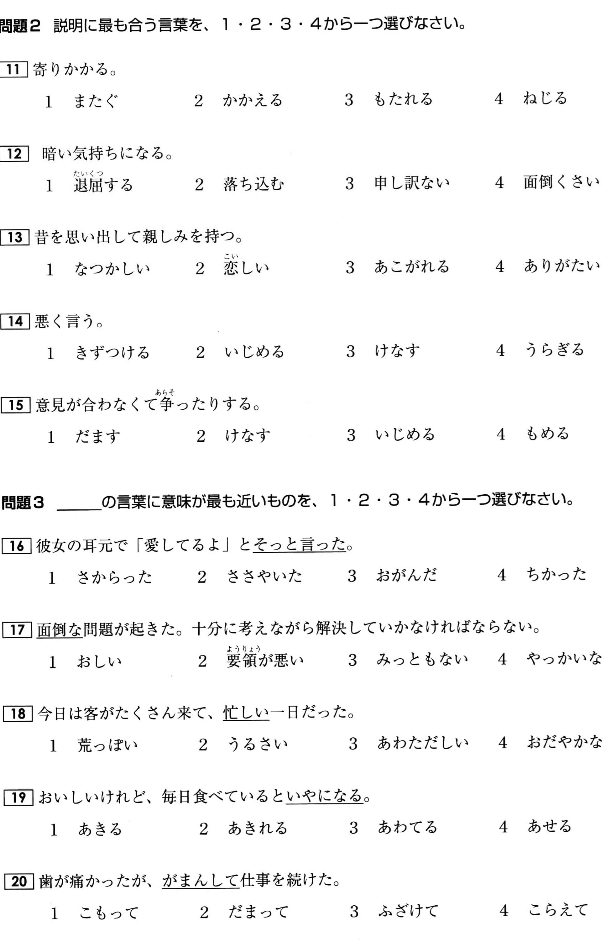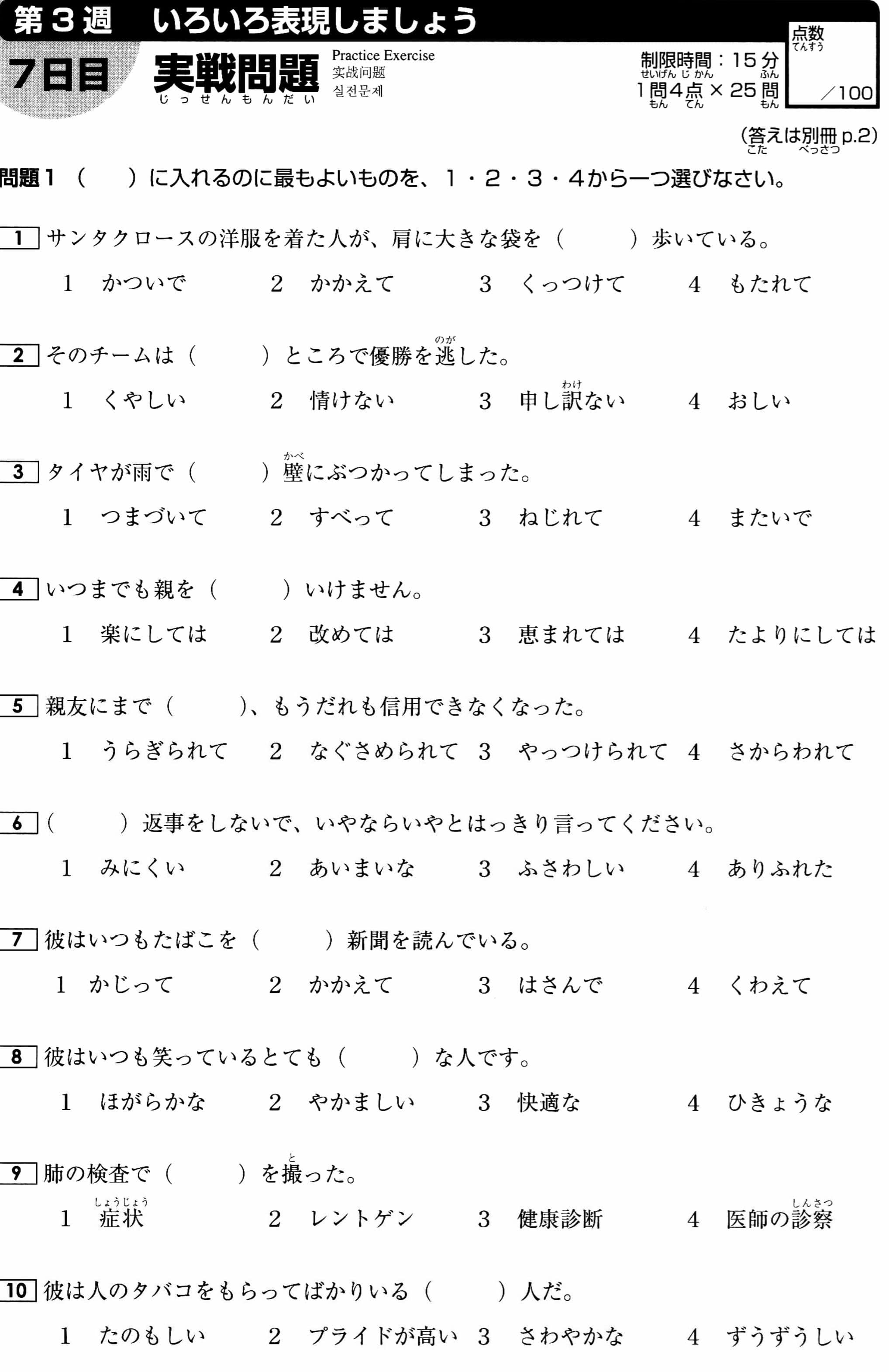 JLPT N2 Vocabulary Exercises: Test 3 (With Answers)
