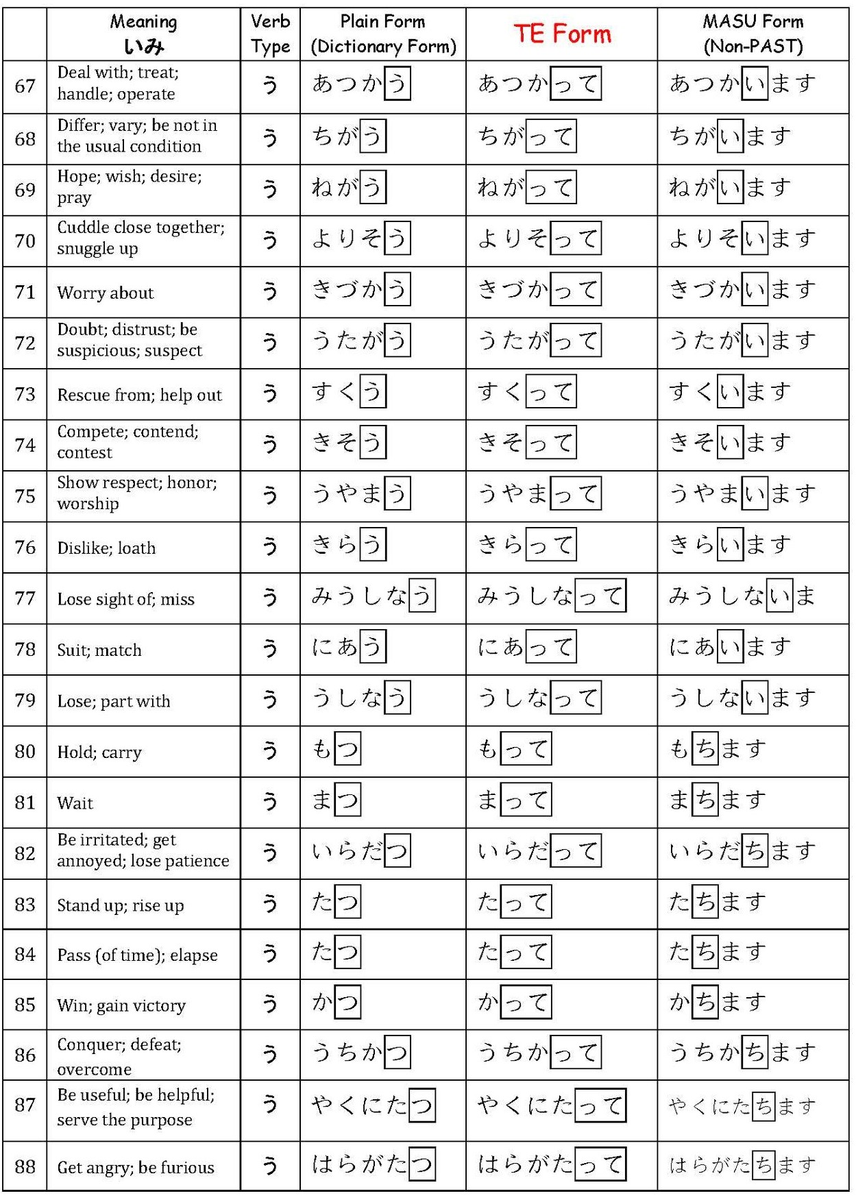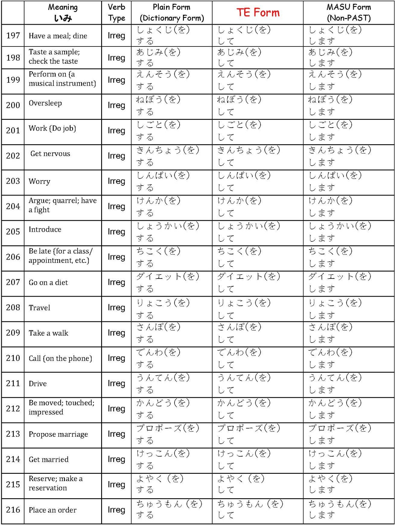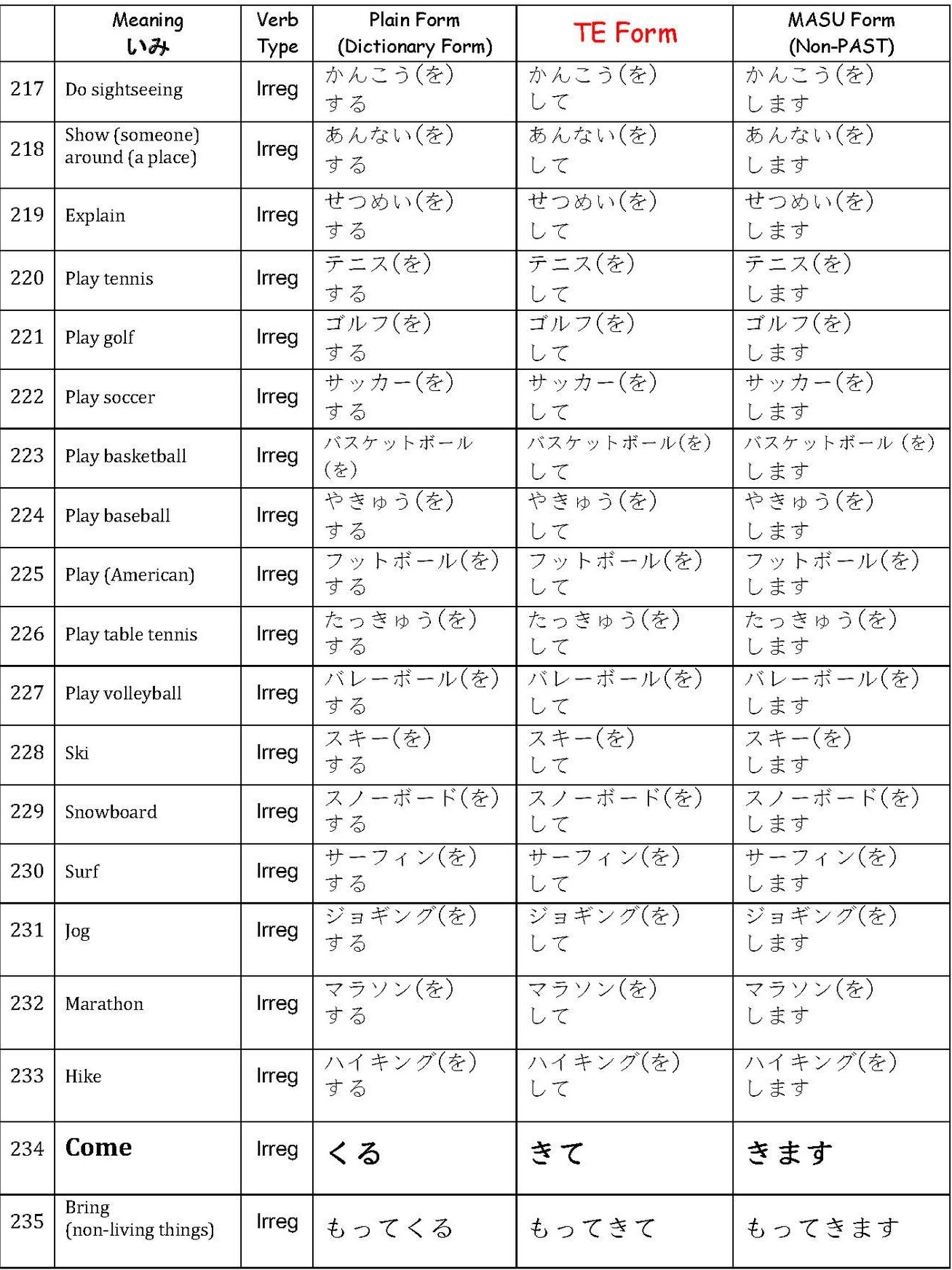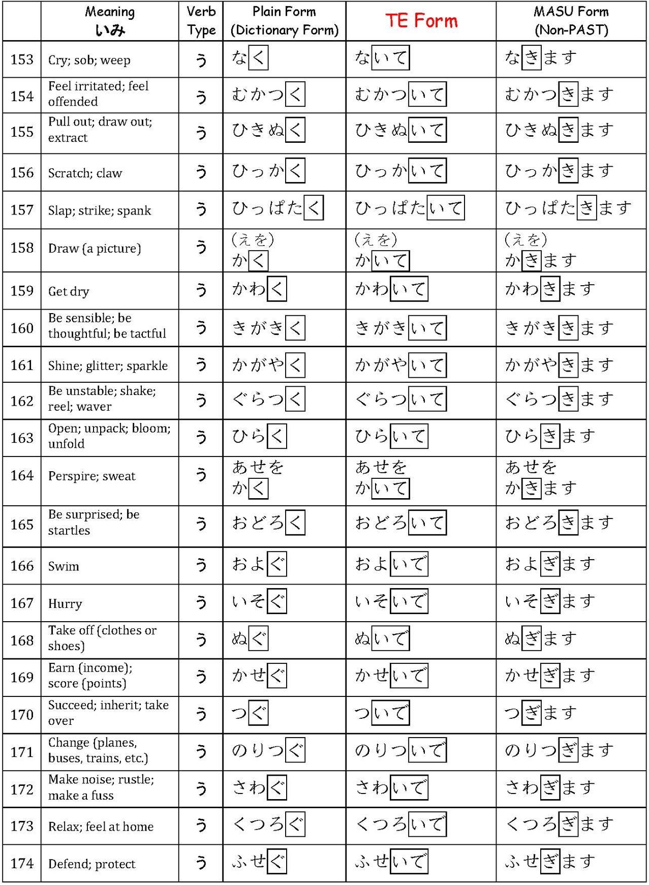 Verbs て-Form List